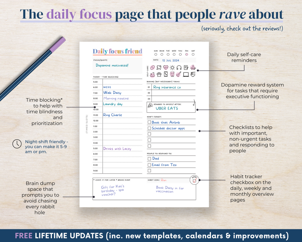Buy once, use forever - ours is the only ADHD planner that offers lifetime updates!